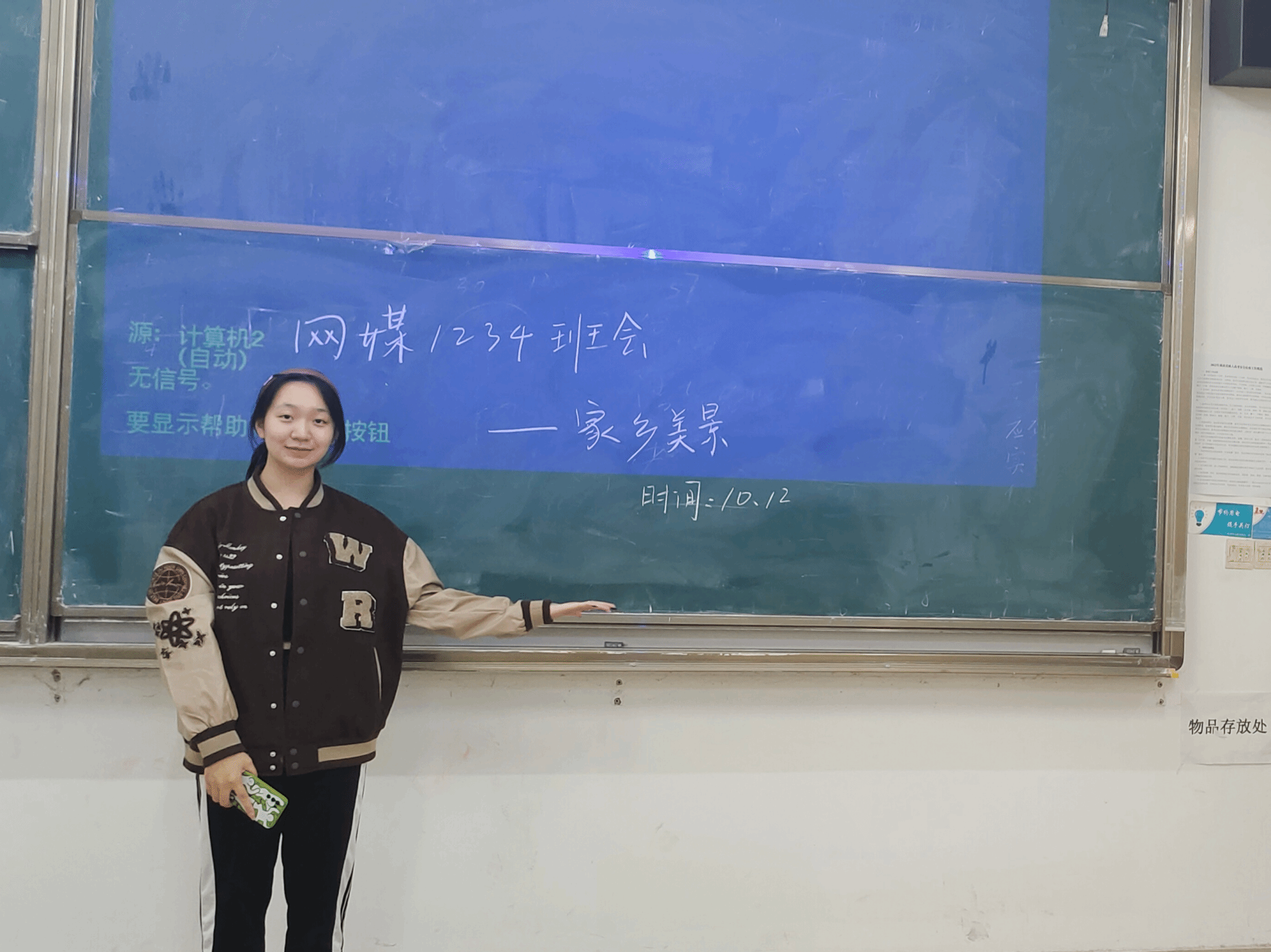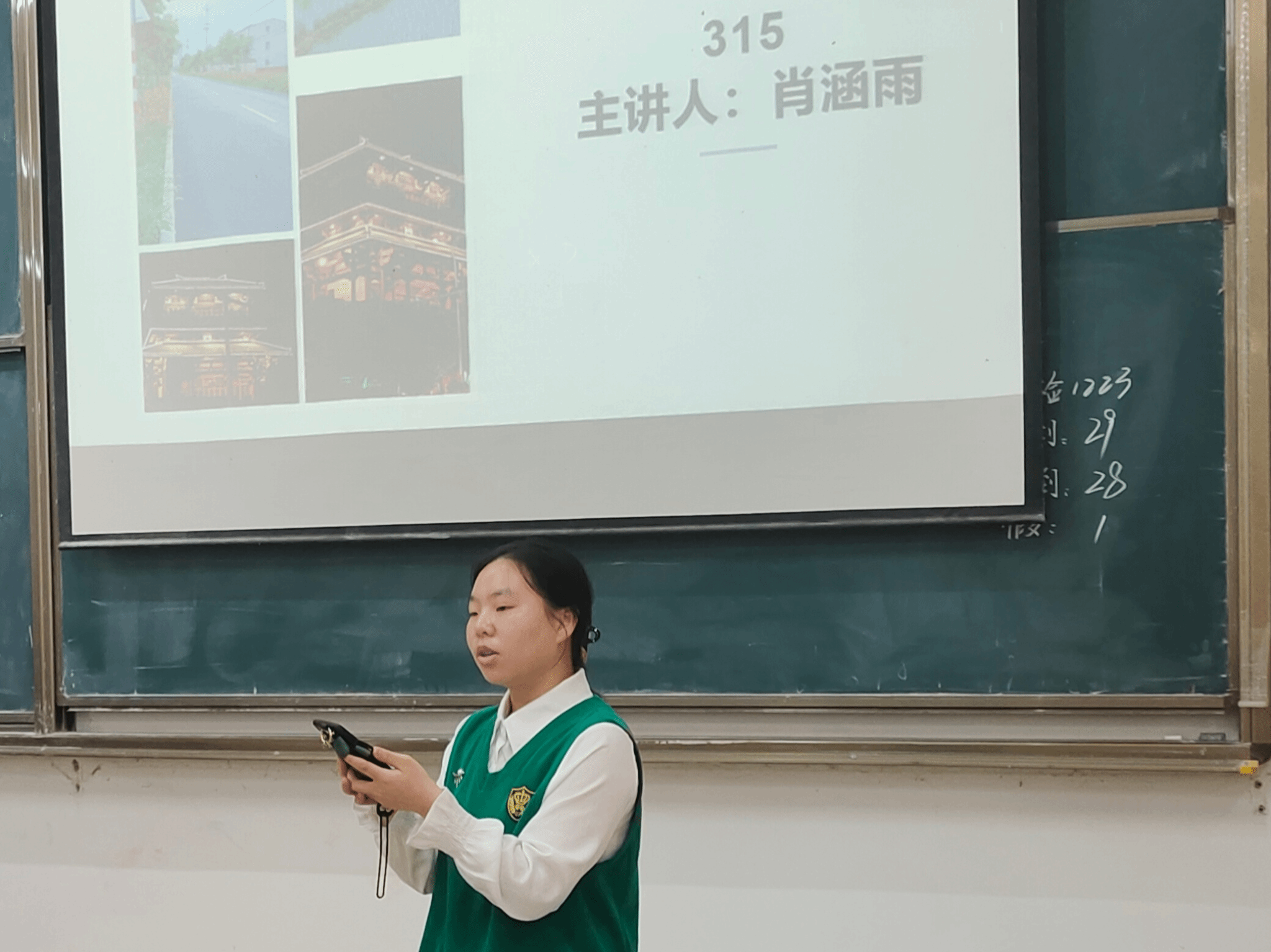 活动开始,由班长李沙桐同学对此次活动进行主持。每个寝室都有一位代表的同学来介绍自己的家乡的美景,每一位同学都表现的很好。