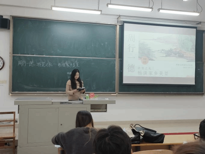 家是每一个人生活的港湾,是每一个人的情感寄托,家乡则承载着每个游子的深深思念及眷念。2023年10月15日,网媒1232班班长杨璐组织全班同学在教学楼2-301开展周行一德——“诗和远方”的探讨主题活动,让同学们互相交流各自家乡的美食美景美物,增强同学之间的了解。