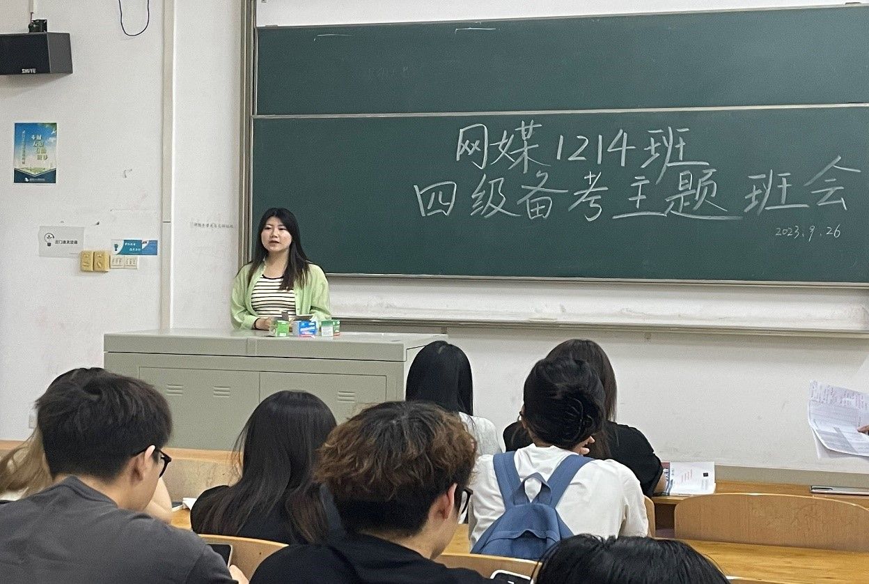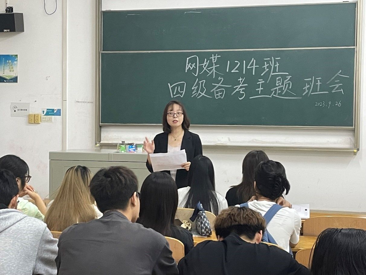 为了鼓舞同学们更好地进入四六级的备考阶段,充满信心地迎接十二月份的四六级考试,9月26日上午,网媒1214班全体同学们在导师班主任张慧老师的带领下,在教学楼2-103开展四六级备考主题班会。