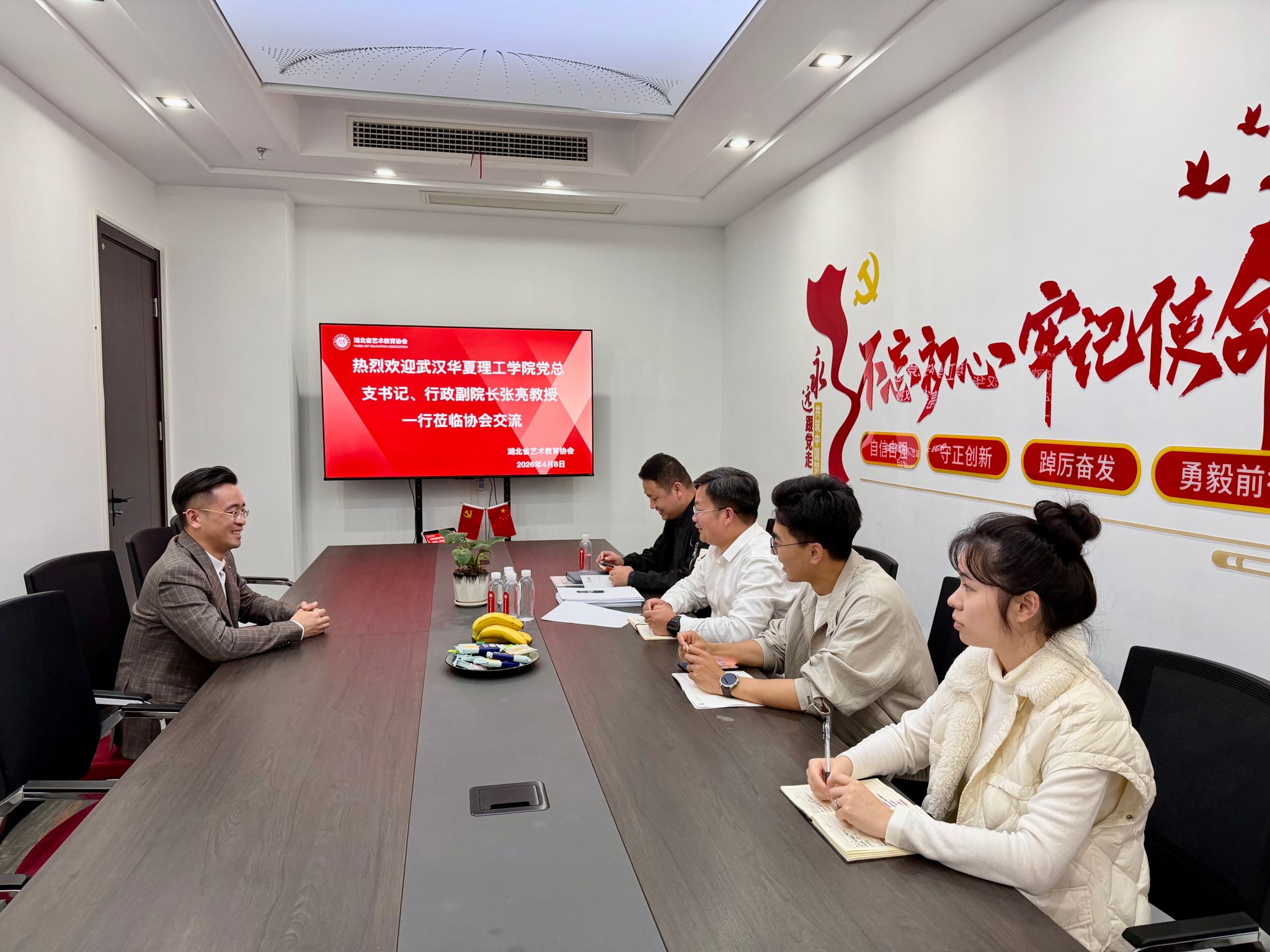 在湖北省艺术教育协会,双方就共同做好本月2026届毕业生双选会做了详细沟通交流。座谈交流会上,张亮代表学院向艺术教育协会长期以来的支持表示感谢,并全面介绍了学院学科建设、专业特色、人才培养成果及2026届毕业生基本情况。他指出,协会链接省内各高校、设计类企业等优质资源,为毕业生提供就业指导、岗位推荐等提供了强有力支撑,希望后期加强交流合作,实现校企资源共享、优势互补、合作共赢。他强调,就业是最大的民生,通过将访企拓岗常态化、长效化,凝聚校企合力,做实做细就业服务,为学生搭建从校园到职场的无缝衔接平台,以扎实举措保障毕业生顺利就业、满意就业,为服务地方经济社会发展贡献力量。