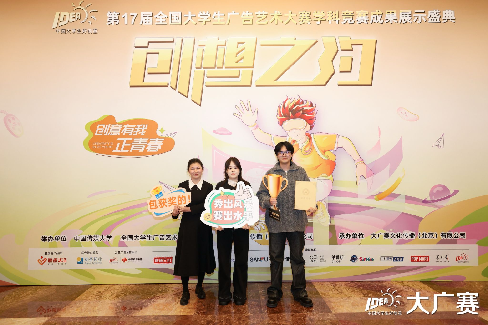 12月6日上午,第17届全国大学生广告艺术大赛(简称“大广赛”)学科竞赛成果展示盛典暨华彩20周年颁奖盛典在全国政协礼堂举行。我院师生在本次大广赛中夺得视频类国家二等奖一项,策划案类国家二等奖一项。