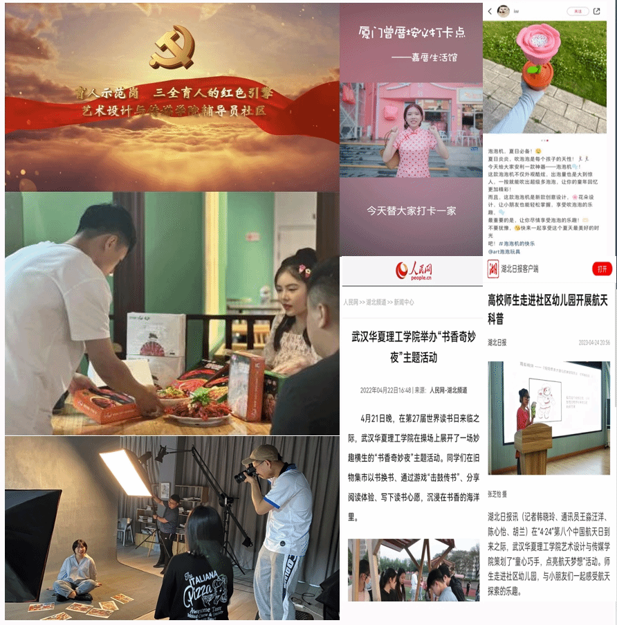 网络与新媒体专业依托传媒“颜”究院名师工作室,以多种形式为学生开展创新创业实践,与企业协同培养实践应用型人才。在服务湖北区域经济和文化发展方面,与企业签订产学研合作协议和横向技术服务合同,将项目植入专业课程,为企业拍摄各类宣传片35部,开展直播项目3项,小红书、抖音等平台宣传服务705条。在社会服务方面,师生们走进社区、深入基层,积极参与各类公益活动,运用新媒体知识技能传递社会正能量,策划发布各类新闻稿件200篇,其中在人民网、中国新闻网、湖北日报、极目新闻等平台发布宣传稿件40篇,获得高度赞誉。