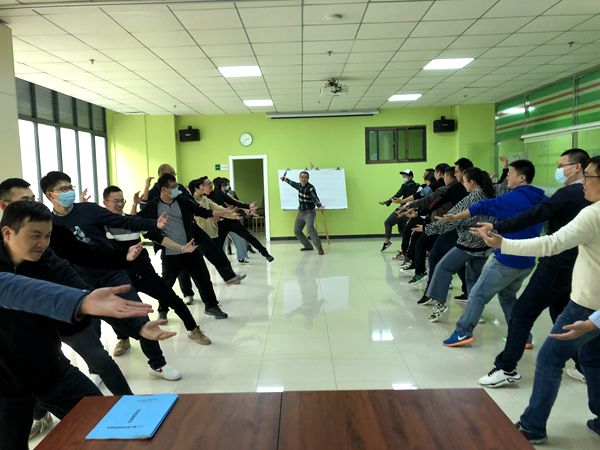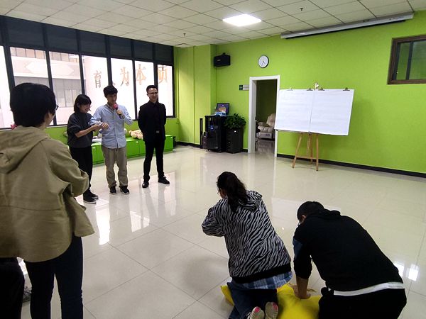 韩志来老师首先介绍了自己对课程的理解以及授课经历。他提出本课程重在团体互动中的体验和感受,以心理游戏和心理剧等情景模拟的方式帮助学生增加积极情绪体验,从而推动自我觉察,进一步探索自我,尝试和他人建立联系。因此心理实践课教师需要通过主题团体辅导的亲身实践和情境模拟方能带领学生上课。今天主要带大家体验八个实践课主题中的四个,即新生适应团建、人际沟通、恋爱管理及生命教育,这可能是学生最常见和最迫切的心理困扰来源。今天示范带领团体活动,大家都尽量放下面具,开放投入,用心感受。20多位老师被分成两组参与活动,示范培训持续了近3个小时,最后在大家依依不舍的欢笑声和若有若无的沉思中结束了。