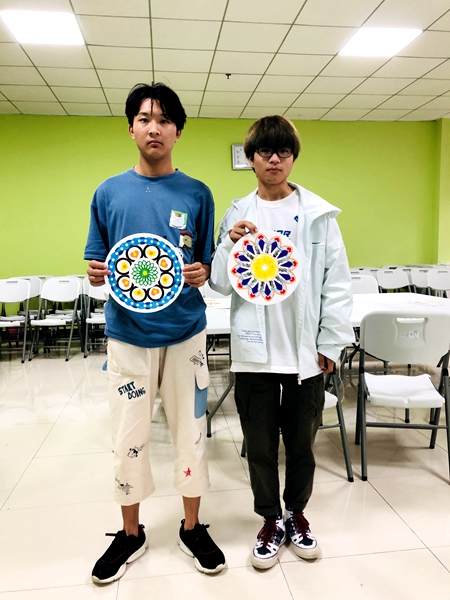 本次活动内容是曼陀罗绘画。活动伊始,伴随着轻柔舒缓的轻音乐,李霞老师先带领我们进行身体上的放松,在片刻愉悦放松的冥想之后,我们开始了绘画。涂色是个似乎容易但其实并不容易的工作,顺滑的毛笔刷执于手中,心也仿佛跟着柔软起来,一笔一划不舍得跨出图案的边界。颜色随意挑选,无心插柳的色彩组合最后总会汇成一幅独一无二的艺术作品。