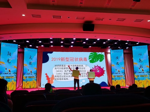 颁奖环节结束后,八支在心理情景剧中脱颖而出的队伍带着他们的作品在舞台上进行展演。商学院的《口罩之战》告诉大家出门戴口罩的必要性,智能制造学院的《宿舍风波》向我们展示了大学生的宿舍关系,土木工程学院的《醒悟》用科幻的表现方式传递着“爱让我们不断成长”的信念,信息工程学院的《对你而言》让大家看到了大学生的自尊、自强与自信,外国语学院的《白昼生于黑夜》向所有的抑郁症患者表达爱,体育学院的《虚荣花园》传达了着正确的大学生消费价值观,艺术与传媒学院的《借一束光》让我们对未来的路充满信心,生物与制药学院《一念之差》鼓励大家志存高远、知识改变命运。
