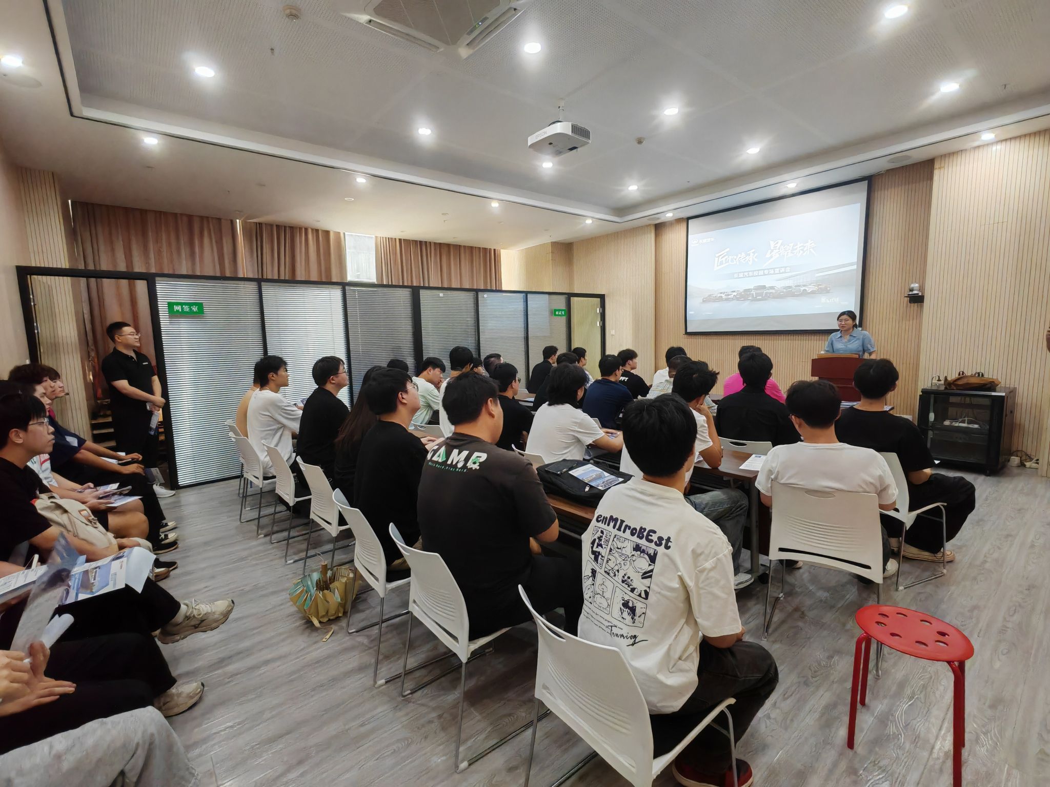 招聘宣讲环节,招聘团队围绕企业发展与岗位需求展开介绍。从长城汽车的行业影响力、“以客户为中心”的企业文化,到大冶分公司现代化的生产车间、舒适的员工宿舍与食堂等工作生活环境,再到清晰的薪资结构、五险一金保障、年度调薪机制及职业晋升通道,团队通过案例与图文结合的方式,让学生全面了解企业情况。