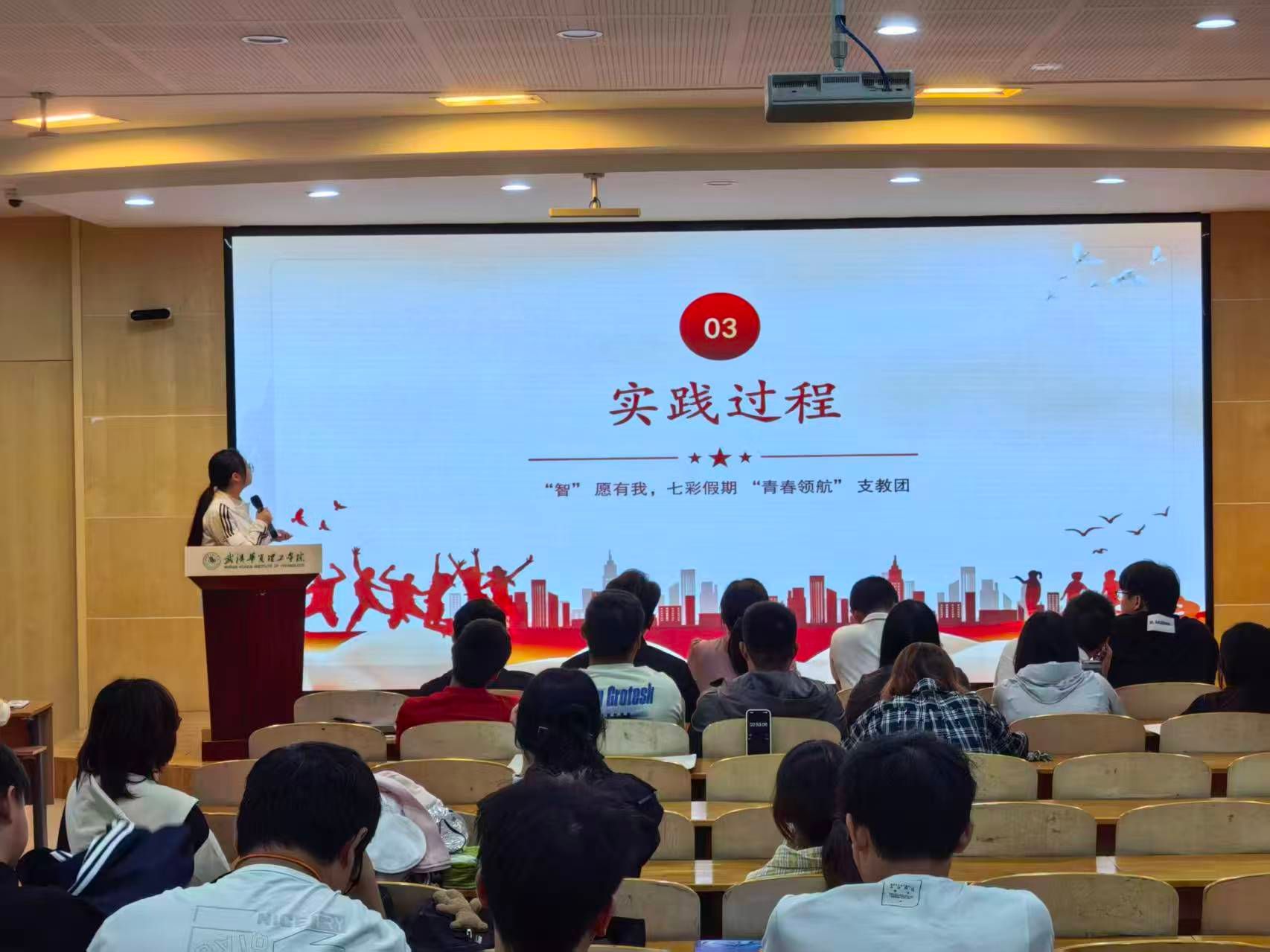 9月24日,智能制造学院“智”愿有我-七彩假期-青春领航支教团成员齐聚2教201教室,正式参加暑期社会实践成果答辩。支教团负责人陈仪婷代表团队,围绕暑期在湖北省黄冈市蕲春县向桥中学的支教实践,从团队介绍、项目初心、组织准备、实践过程及荣誉展示五个方面展开汇报,全面展现团队在乡村教育帮扶中的青春担当与实践成效。