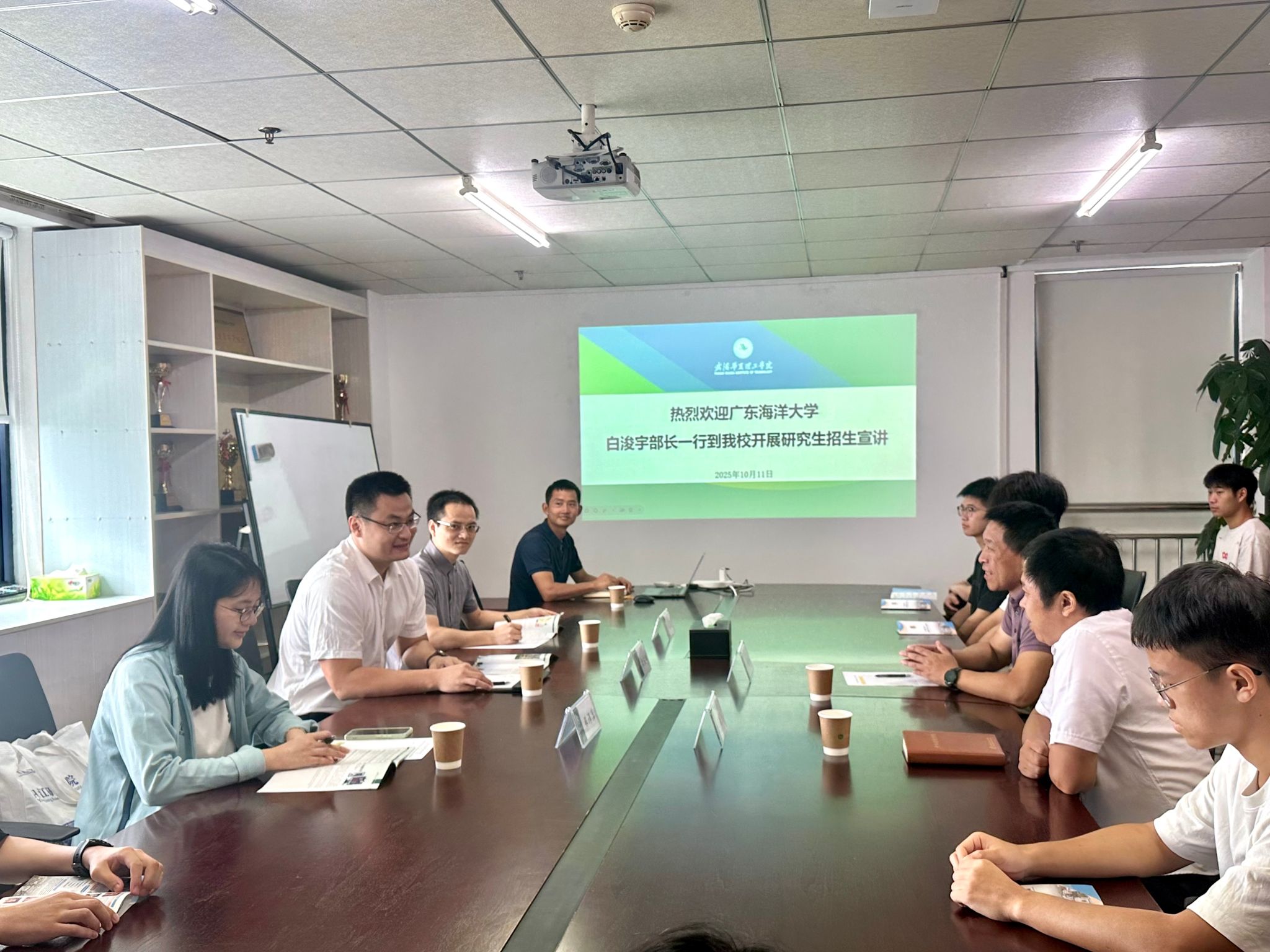 10月11日,智能制造学院联合广东海洋大学材料科学与工程学院举办2026届考研学子研究生招生宣讲会。广东海洋大学教学科研部部长白浚宇、材料科学与工程学院教师刘延国、教学科研部干部张诗萍一行到访交流。智能制造学院执行院长齐洪方、党总支副书记靳路民、组织员祝炜黎、学工办主任向胜涛及毕业班辅导员与2026届考研学子共同参会。此次合作开启了粤鄂两地高校人才培养新篇章,为后续深度合作奠定坚实基础。