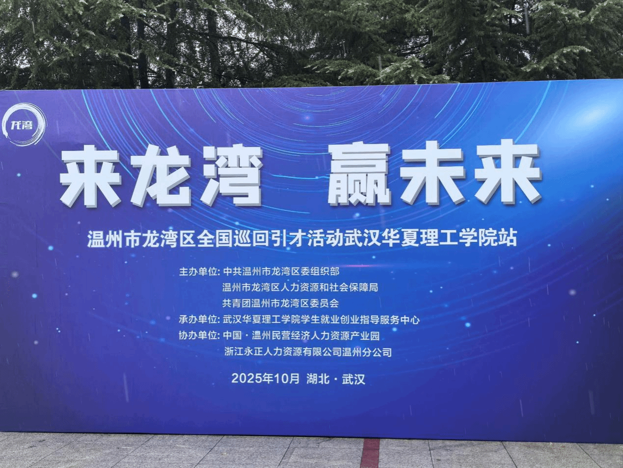 10月18日下午,由中共温州市龙湾区委组织部、温州市龙湾区人力资源和社会保障局主办,武汉华夏理工学院学生就业创业指导服务中心承办的“来龙湾·赢未来”2025龙湾区全国高校巡回引才活动在我校综合楼一楼大厅举行。智能制造学院优秀校友、浙江长江汽车电子有限公司工程师程文博代表公司重返母校,招聘2026届毕业生。