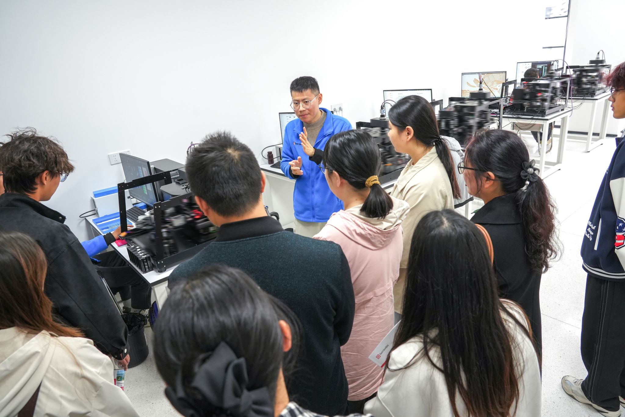 随后,刘宇学长和公司人事部老总带领学生们参观了公司的工作环境,涵盖研发中心、实验室及办公区域。映入眼帘的是排列整齐的设计工位与先进的仿真软件设备,工程师们正专注地进行仪器图纸设计与性能模拟;装调人员严格按照工艺标准对零部件进行组装;专业技术人员正在对成品仪器进行精度校准与性能测试。值得一提的是,在参观过程中,学生们还遇到了同样毕业于武汉华夏理工学院的校友,他们目前已成长为公司的技术骨干,校友们结合自身工作经历与学弟学妹们交流心得,进一步拉近了学生与职场的距离。