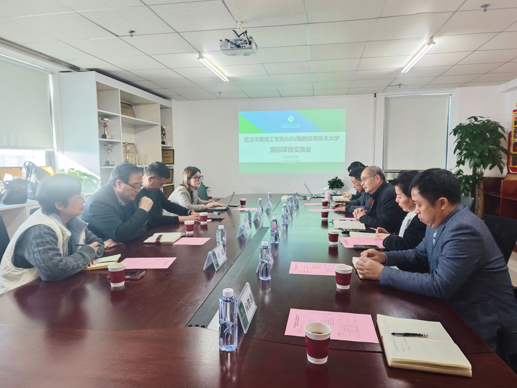 为了加强中外教育合作,拓宽学生的国际化视野,提升智能制造领域人才培养的全球竞争力。11月26日上午,智能制造学院在综合楼919会议室成功举办了与德国XU指数应用科技大学的国际项目交流活动。武汉华夏理工学院副校长丁成忠、国际教育学院院长肖凤华、智能制造学院党总支副书记靳路民及学院相关老师参加活动,会议由智能制造学院党总支书记、执行院长齐洪方主持。
