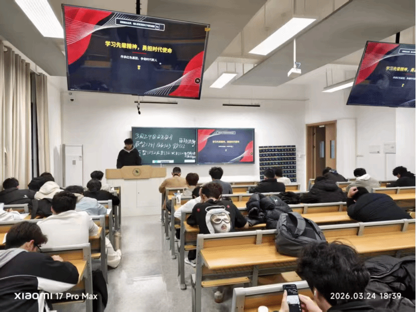 重温雷锋事迹,感悟时代内涵。在学雷锋主题教育月期间,车辆工程1251班、1252班、机自1251班等多个班级先后召开学雷锋主题班会与团课。团课围绕雷锋生平事迹、雷锋精神的时代价值展开,通过观看纪录片、诵读雷锋日记、分享感悟心得等形式,带领同学们重温雷锋同志爱岗敬业、助人为乐、无私奉献的崇高品格。