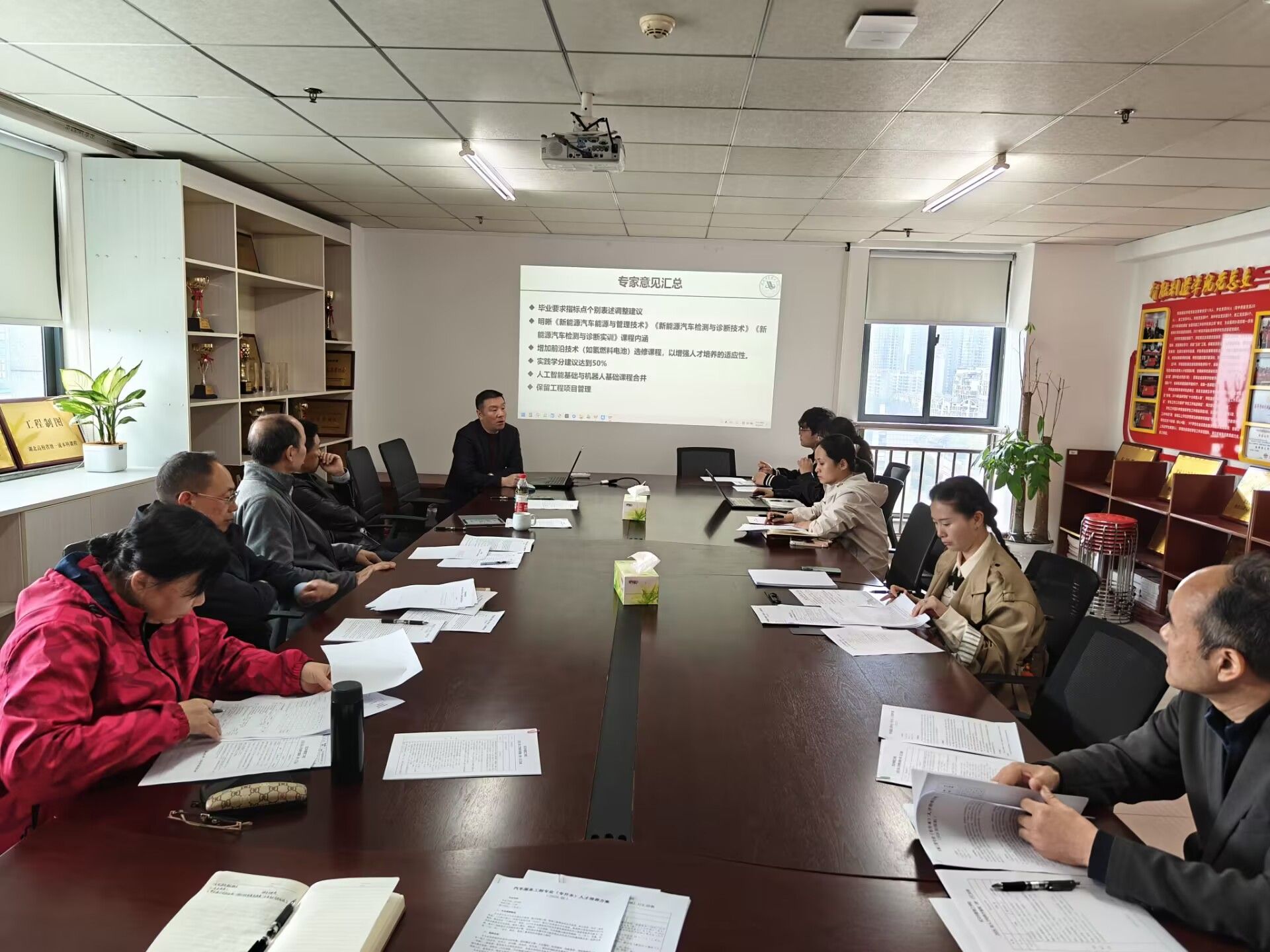 本次评审会涉及车辆工程、材料成型及控制工程、汽车服务工程三个专升本招生专业。会上,各专业系主任结合前期行业企业调研、毕业生反馈及专升本人才培养特点,详细介绍了2026版人才培养方案制(修)订的背景、总体思路,重点汇报了培养目标、毕业要求的优化方向。