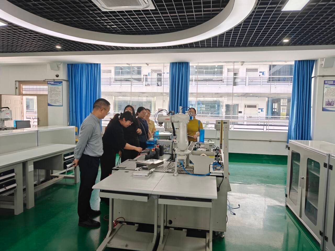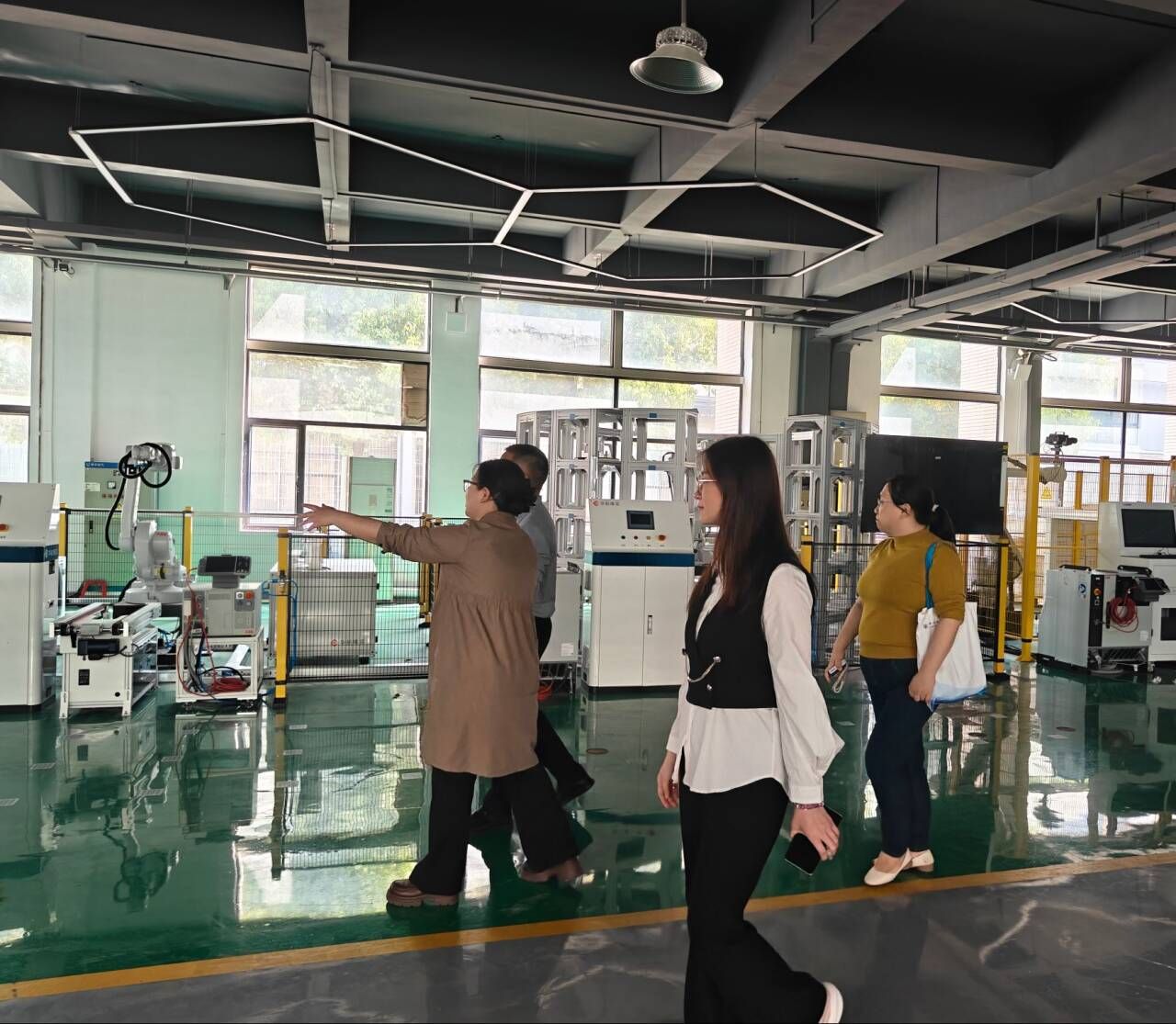调研期间,在武汉职业技术大学智能制造学院相关负责人陪同下,张琳琅、李媛一行先后参观了专业实训室,详细了解实训室建设标准、设备配置、实践教学开展情况,实地感受其在实践育人、技能锤炼方面的特色做法与成效。
