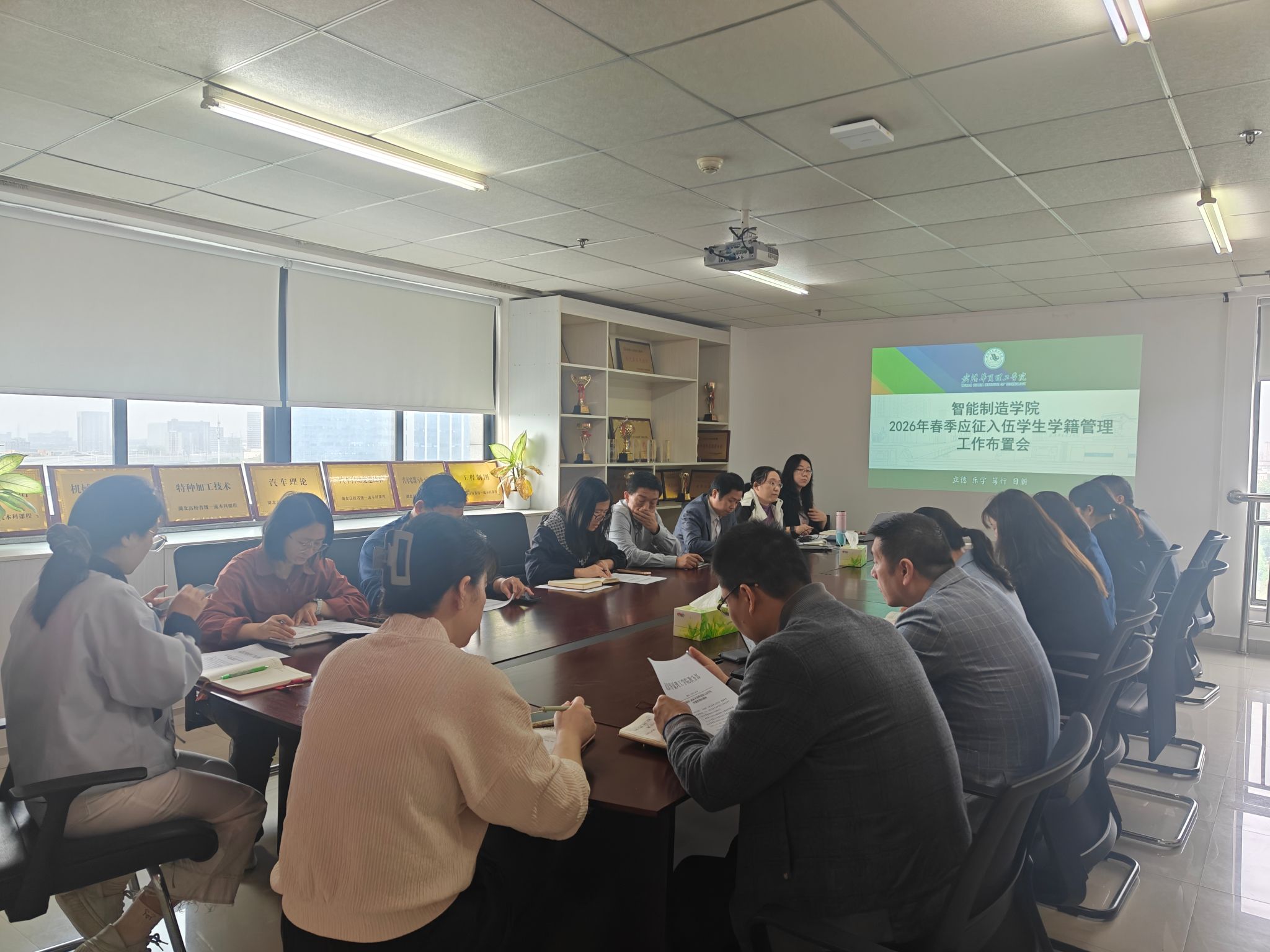 4月13日上午,智能制造学院在919会议室召开2026年春季应征入伍学生学籍管理工作布置会。会议由教学副院长张琳琅主持,学院院长齐洪方、党总支书记靳路民、副院长李媛、相关毕业设计(论文)指导教师、辅导员及教学办工作人员参会。