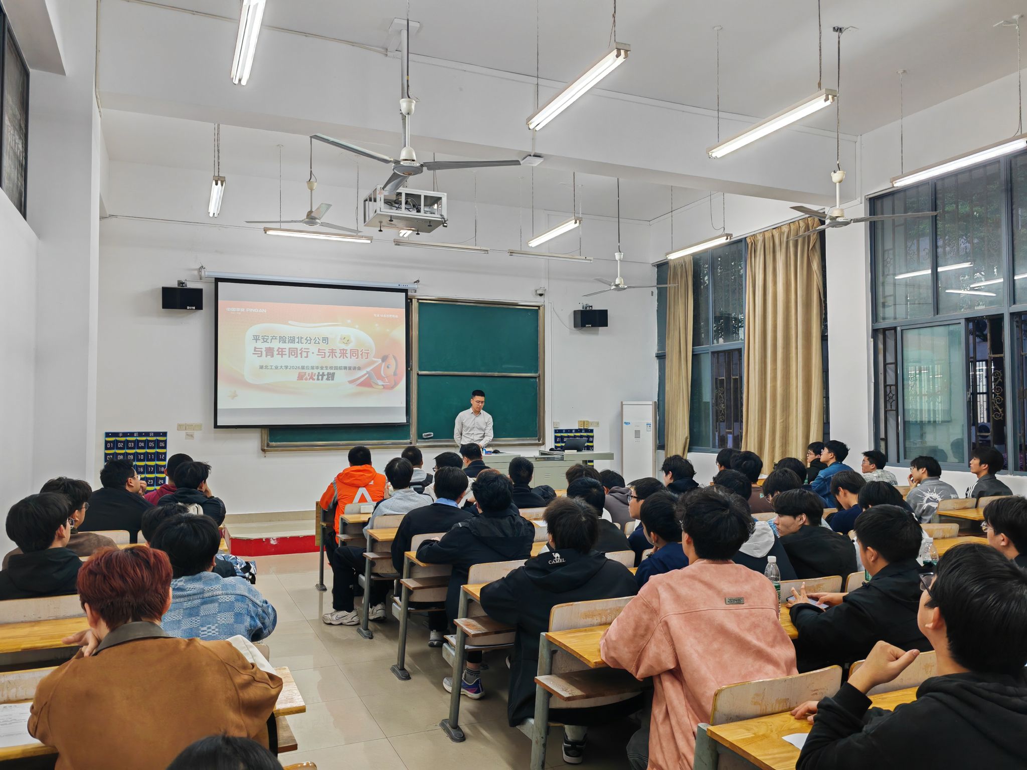 4月15日晚,平安产险湖北分公司校友返校开展专场招聘活动。党总支组织员祝炜黎、毕业生辅导员及2026届、2027届毕业生共同参与了此次活动。