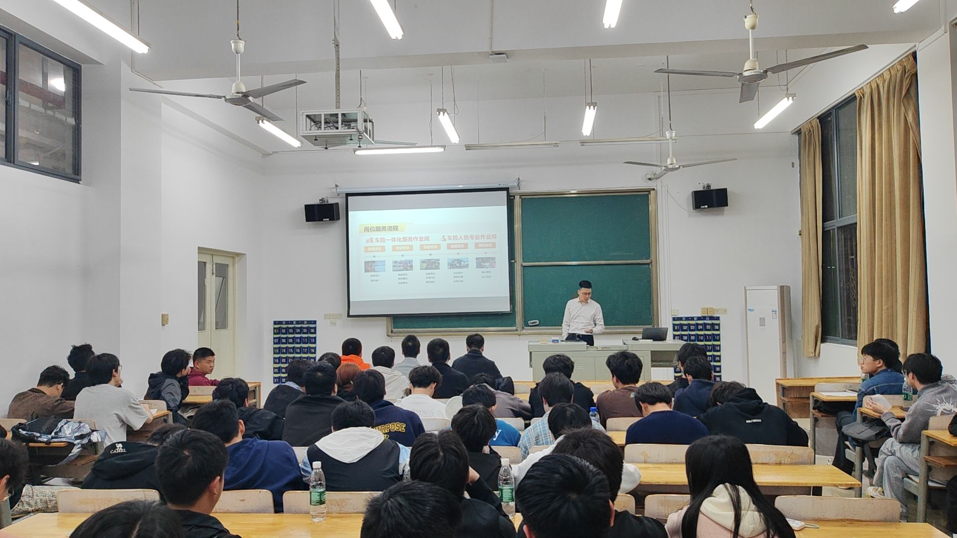 在交流会上,平安产险湖北分公司理赔运营中心副经理方潜龙、武汉本部客服理赔部理赔经理许聪、队伍运营团队作业支持岗姚杰、武汉本部客服理赔部江夏区基础作业主管刘志强分别就平安产险湖北分公司各个岗位需求做出了详尽的讲解。方经理和许经理特别感谢学院的专业培养,表示在校期间扎实的理论学习和实践训练为个人的职业发展奠定了坚实基础。面对在场的学弟学妹,他们提出三点建议:一是要珍惜在校时光,夯实专业基础;二要养成吃苦耐劳,踏实肯干的优秀品质;三是要提前做好职业规划。