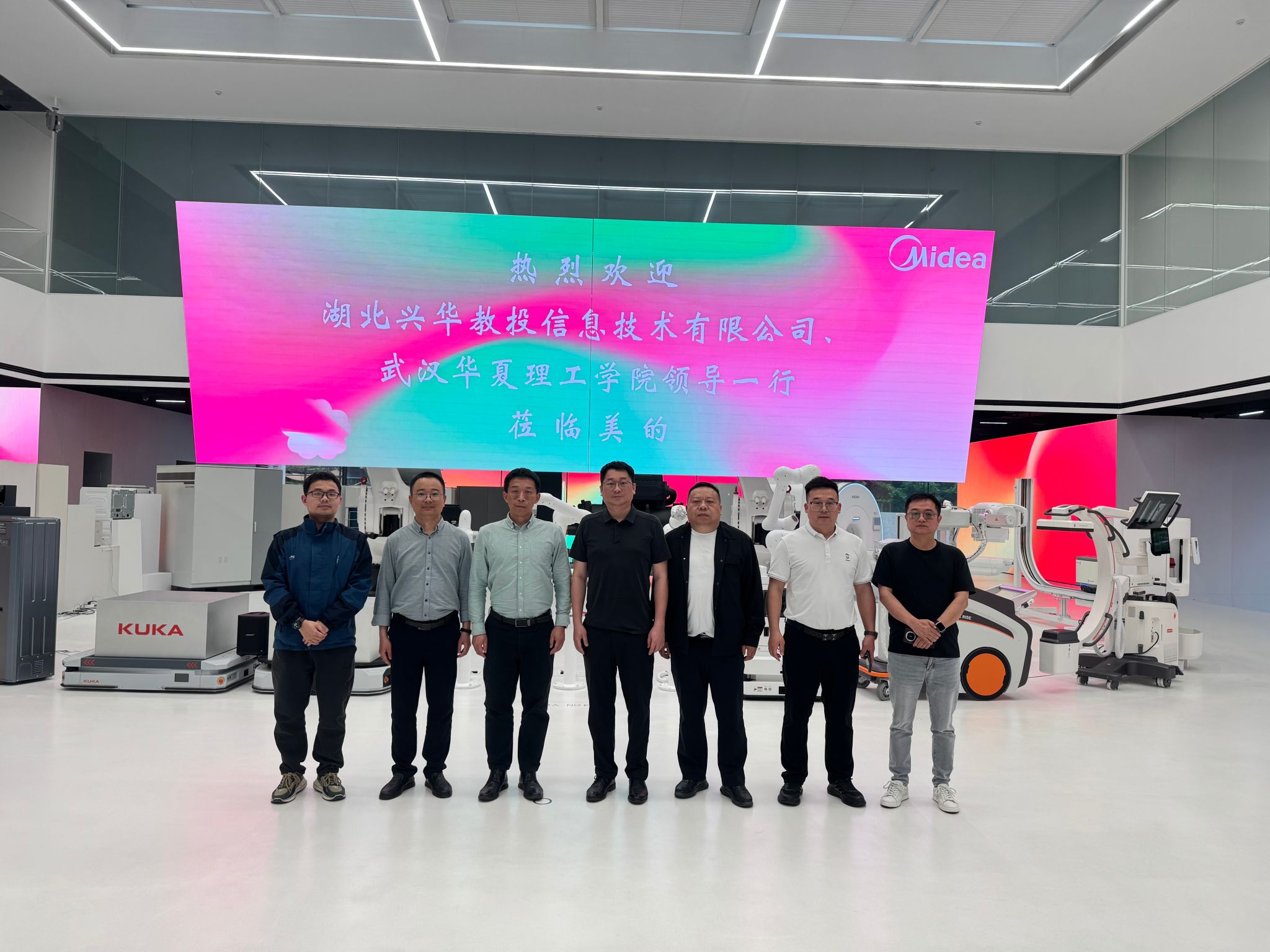 齐院长一行听取了美的集团相关智慧科技的发展历程、前沿技术、应用场景等介绍,了解了KUKA(中国)的主要业务、研发生产、产教融合等内容,参观了美的集团展厅、KUKA(中国)展厅、KUKA学院等,针对工业机器人、制造自动化、物流自动化等技术,探讨了智能制造在汽车产业中的深度应用,与KUKA学院达成了初步的合作意向。
