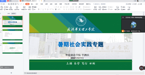 为增强大学生的实践能力和组织能力,鼓励同学们积极参加暑期社会实践活动,5月1日晚,我院辅导员通过腾讯会议形式开展了暑期社会实践宣传动员主题教育,全体学生参加。