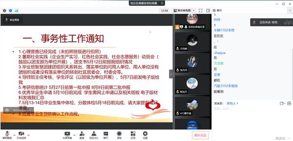 会议还就心理普查工作、智慧团建组织关系转出、考研信息统计、优秀毕业生申请及毕业生体检工作做了部署和要求。