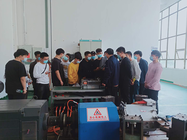 本次实验需借助企业的电机台架和整车控制平台分别完成实验一:驱动电机系统性能实验;实验二:整车控制系统性能实验。首先,学生统一乘大巴车赴企业,由企业人力资源部曾经理负责接待,她对企业的疫情防控管理及车间安全做了简要介绍,要求每位学生严格遵守企业的安全管理。然后,由实验室负责人何工对本次实验做操作讲解,包括对实验原理、实验平台、设备性能、操作步骤、数据采集及处理等过程做了细致讲解,接下来学生均分为两组,在何工、黄工等几位实验员的带领下,分小组操作实验平台,对电机完成起动、加减速、停机、正反转的控制过程,同时采集不同转速下的输出转矩、功率、温度等实验数据。最后,各位同学将采集的数据进行现场处理,工程师协助学生利用专业软件输出实验结果,对实验结果进行分析,并结合理论知识对实验结果进行评价,对数据存在的误差、理解不深刻的学生现场与企业工程师面对面交流沟通,最终让学生完全理解和掌握此次实验的全过程。