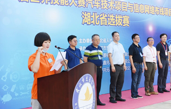 2020年8月2日,世界技能大赛汽车技术项目湖北省选拔赛在武汉交通学校开赛,我院汽车服务工程1191班学生吴思雨同学参赛。开幕式上,吴思雨同学作为参赛选手代表宣誓,在比赛中脱颖而出获得亚军。