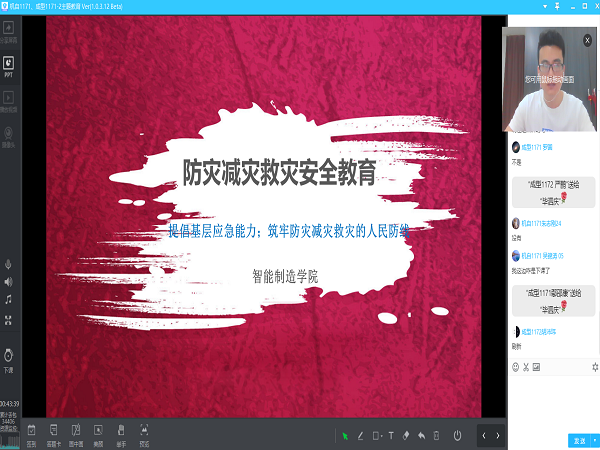 根据省教育厅关于做好2020年教育领域防灾减灾救灾工作的通知和相关要求,切实做好主题宣传教育工作,5月21日18:30,成型1171、1172班与机自1171班通过腾讯课堂开展“防灾减灾救灾安全教育——提升基层应急能力,筑牢防灾减灾救灾的人民防线”主题活动,此次活动由辅导员毕泗庆主持。
