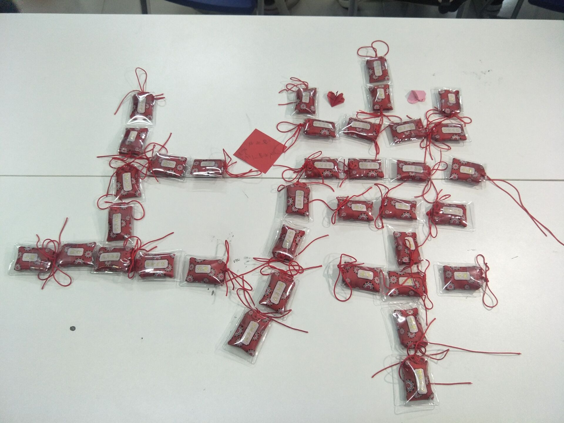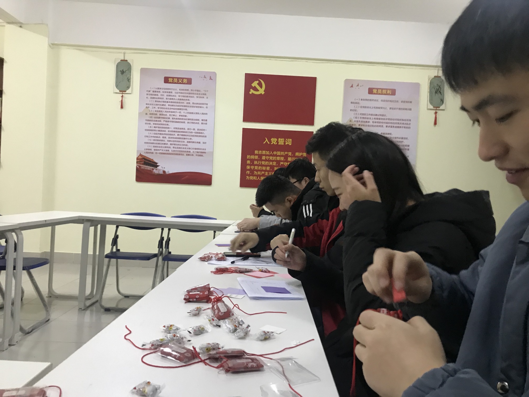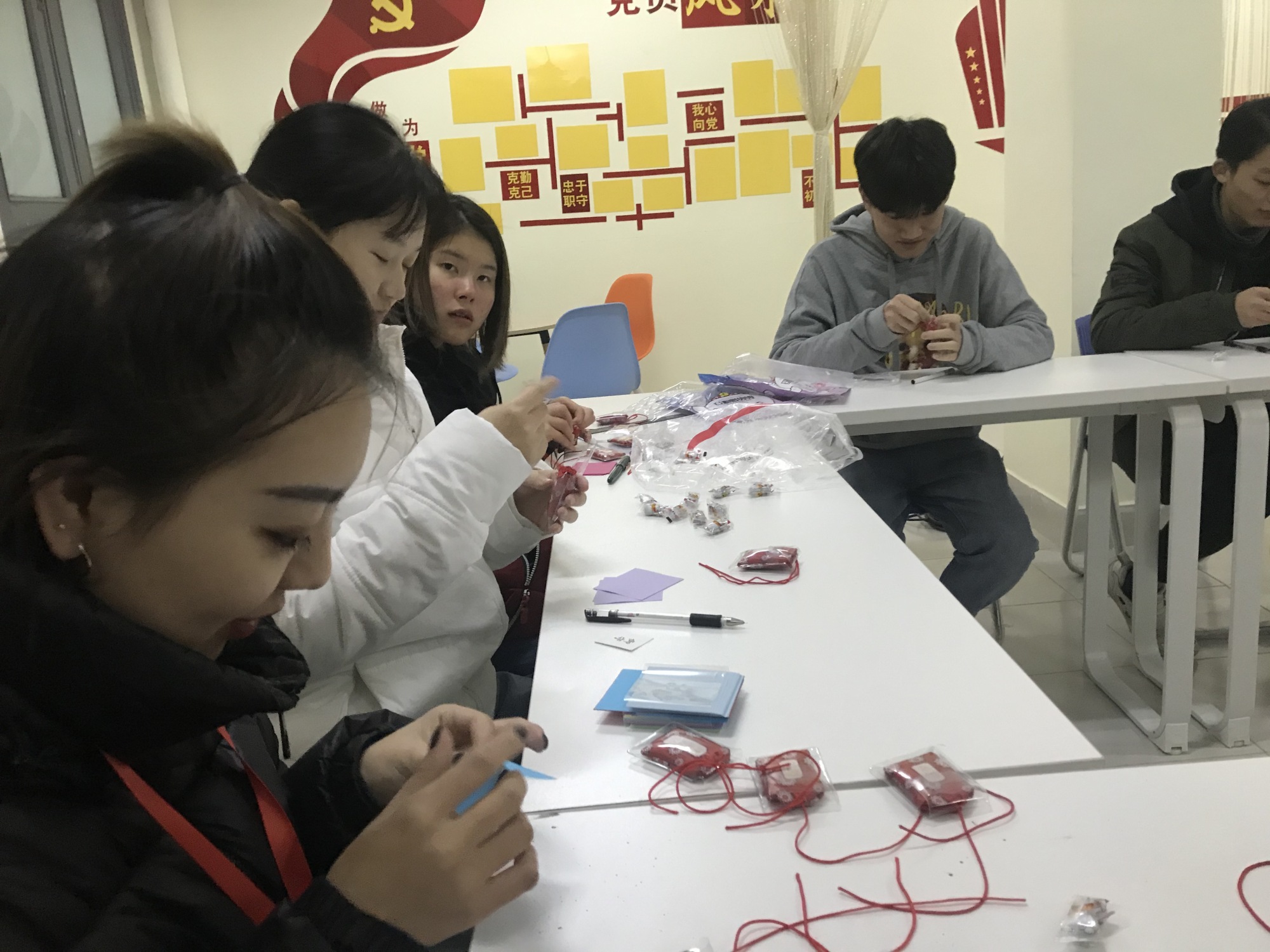 活动中,所有支部成员在彩色卡纸写上了“金榜题名”、“一研为定,定为研一”、“考研经历是一种财富,祝愿你能获得人生第一桶金”、“祝你考研成功,更祝你觉得这一年值得”等祝福语及折叠成心形卡纸和可爱的动物糖果一同放进了锦囊中,通过走访寝室将承载着满满祝福的锦囊送给学长学姐。