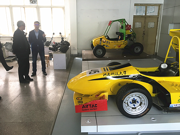为更好的与本科院校交流合作,学习借鉴其人才培养方案、教学科研、科技竞赛、实验室建设、校企合作和专业认证等方面的宝贵经验,4月11日,我院车辆工程专业负责人乔维高带队前往河南科技大学调研,参与调研的有教学行政办主任曾志娥、车辆系副主任冯理和汽服系教师王建美。