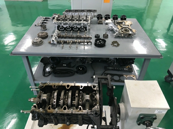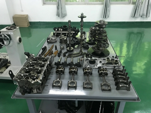 实验中心开展的暑期技能培训已进行了一个星期,在这5天时间里,实验中心青年教师在魏华田主任和向绍卿副主任的带领指导下,对雪佛兰发动机和大众EA888发动机进行了集中培训,然后每位教师一人一天时间独立完成发动机的拆和装,在这周培训中,实验中心教师已将发动机彻底熟悉摸透,细到每一个零部件所用螺栓的型号及数量、配合间隙及所用力矩等。此次培训对提高青年教师的实践技能有很大帮助,老师们纷纷表示,期待下周的培训内容。以下是这周培训的精彩图片。
