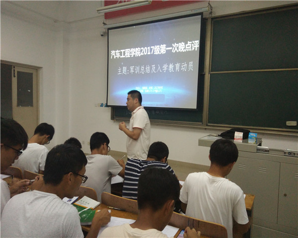 9月24号下午6时30分在1-407教室 ,杨海龙辅导员对新生进行了第一次晚点评,此次点评主要是对军训的总结和新生入学教育的动员。