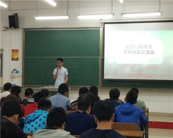 4月23日晚,我院于1-101举行考研经验交流会,14级全体同学参与了此次交流会。