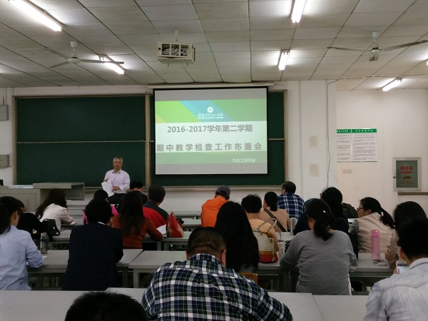 2017年4月18日中午,汽车工程学院在汽车整车构造实验室召开了2016-2017学年第二学期期中教学检查工作布置会。会议有院长唐新蓬教授主持,全体教职工参加了会议。