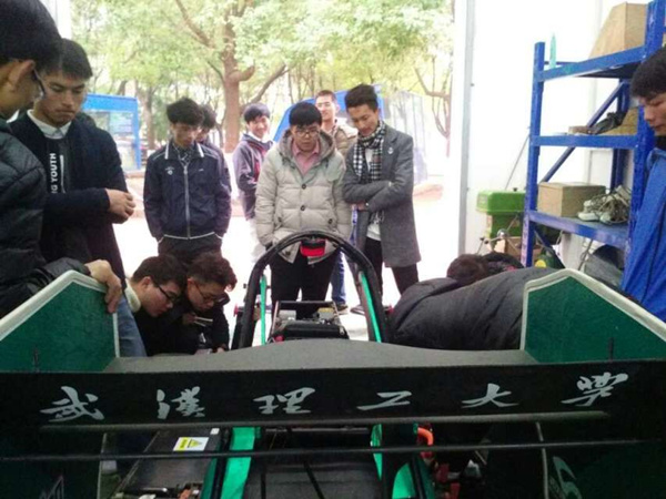 下午两点左右,我校车队成员顺利到达武汉理工大学,并受到了武汉理工大学赛车制作团队的友好接待。即便外面淅淅淋淋的下着雨,但是每个车队成员的热情丝毫不减。简单认识之后,武汉理工大学车队成员为我们介绍了他们赛车的制作过程以及车队未来的建设。在面对还未完成的赛车,大家充满着兴趣,武汉理工大学为我们大家详细地介绍了他们赛车的制作过程以及一些细节问题,积极的与我校车队成员交流分享,并且认真听取了我校车队成员提出的建议,对于我校车队成员提出的问题,他们也都一一的耐心解答。同时在交流过程中,还让我校车队成员在他们的赛车上亲身体验了一下。最后,在武汉理工大学车队队长的带领下,我校车队成员参观了他们的工作室,并在他们的工作室进行拍照留念。