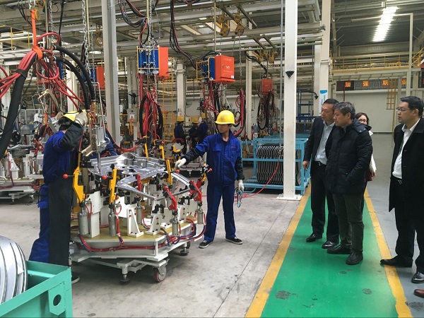 在与苏部长进行沟通交流之后,院领导参观了基地的焊装车间、冲压车间和总装车间以及学生就餐餐厅等,对学生的工作环境和生活环境有了更深入的了解。车间工作环境十分干净整齐,各个工序正在有条不紊的进行,身着统一工作服的工作人员操作娴熟,充满朝气与活力。“汉龙班”学生被分为不同的小组,分别在焊装车间、总装车间、物流、内饰等不同的工作岗位。参观期间遇到正在工作的华夏学子,刘书记上前询问他们的实习情况,焊装车间的学生较为辛苦,体力劳动较大,但他们表示乐此不疲,学到了很多实用的东西。我校学子,“汉龙班”学生李小坤同学在见到我们后十分感动,他表示:“学院领导不辞辛苦来慰问我们,在他乡,我们心里倍感亲切和温暖”。