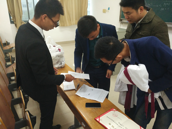 11月7日16:00,广汽传祺海恒新粤店杨总一行三人来到我院,在教学楼1-305室举行2016第十七届武汉国际车展实习薪资发放仪式。
