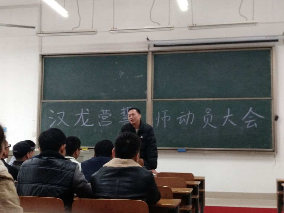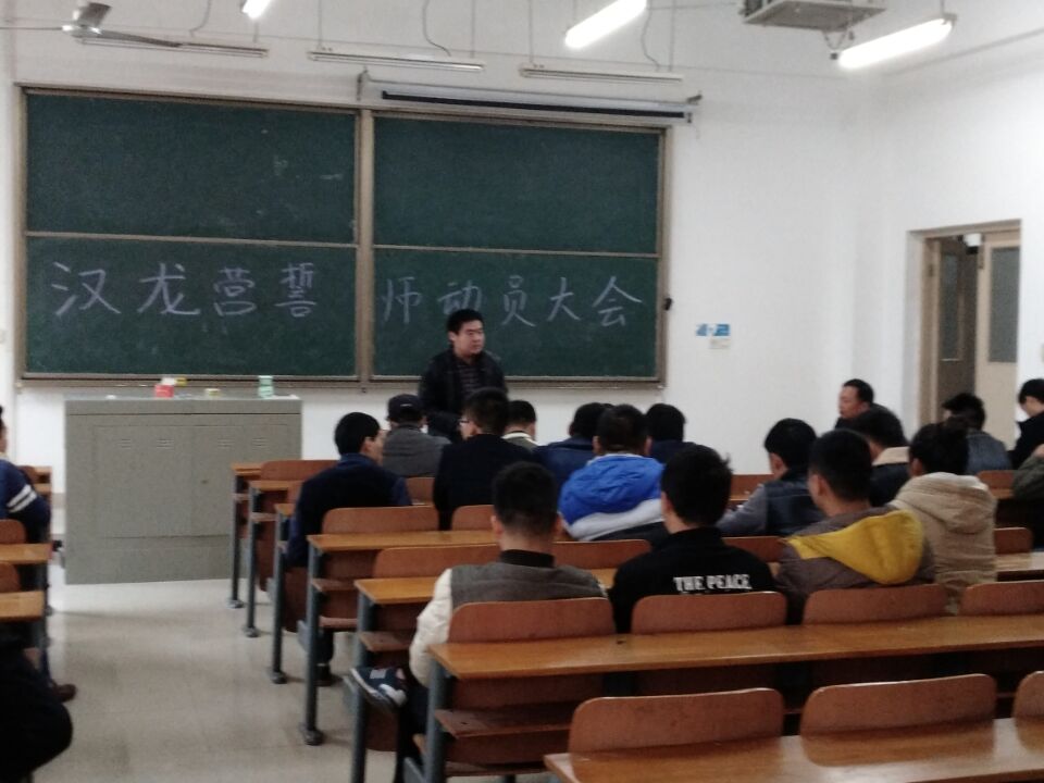 11月10日下午,4时40分在我校1-208教室举行了首批汉龙班誓师动员大会。汉龙班是由10月份与大冶汉龙汽车有限公司签约的50多名大四学生组成。大会开始前,同学们按秩序依次到场,大家怀着激动心情纷纷就坐。党总支书记刘源老师亲临大会现场,大四辅导员杨海龙老师作为汉龙班带队作开场发言。