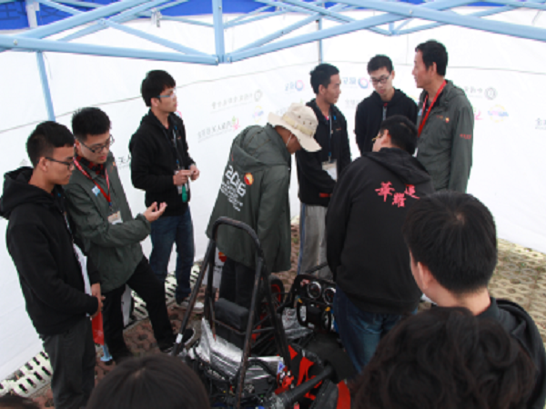 2015年12月8日我校汽车工程系学子正式成立华耀追梦车队并代表我校参加了此比赛,车队每个成员都怀着对汽车的狂热之心投入大量的精力和时间。这其中也不乏艰辛与汗水,遇到了很多意料之外的困难。加工时间太长,加工精度有问题耽误进度;车队资金有限,很难按照最优方案去购买;车手训练不够,没有场地没有训练资金。但有着队长的正确指引,队员们的坚持、刻苦,整辆车终于在比赛前完工了。无数个日日夜夜、加班加点孕育出来的成果,终于可以冲上赛场了。