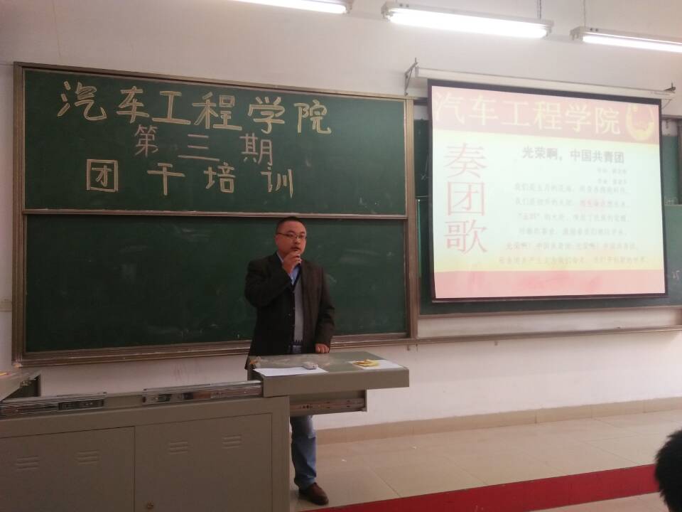 2016年10月25日12点20分武汉华夏理工学院汽车工程学院在1一101召开第三期团干培训。培训的主要的目的是为了进一步提高我院共青团干部的思想理论水平和综合素质,建设优秀团队。本次培训出席的有汽车工程学院学工办张勇主任,团总支书记、14级辅导员刘锋老师,团总支副书记、16级辅导员王信老师,15级辅导员张青老师,13级辅导员杨海龙老师以及汽车工程学院全体学生干部。