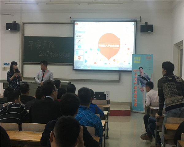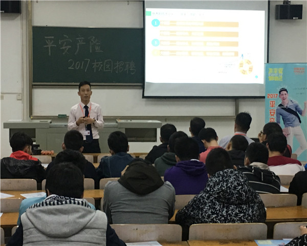 孙经理首先从业务规模、机制文化、综合金融这三个方面整体的介绍了平安公司。接下来他又通过公司公开、公正的文化氛围,多元化的职业发展提升路径,公司对内部人员交流跨界发展的支持,完整的员工福利保障,领先的培训体系,丰富多彩的平安生活和良好的办公环境等方面阐述了平安公司的优势。本次招聘针对的岗位是查勘定损岗。孙经理为同学们详细的介绍了查勘定损系列的职能定位、查勘业务流程、查勘定损员的发展通道,使同学们对平安公司的工作有了一定的了解。宣讲结束后,不少同学对工薪待遇,工作地域等问题进行了提问,杨经理一一做出解答。
