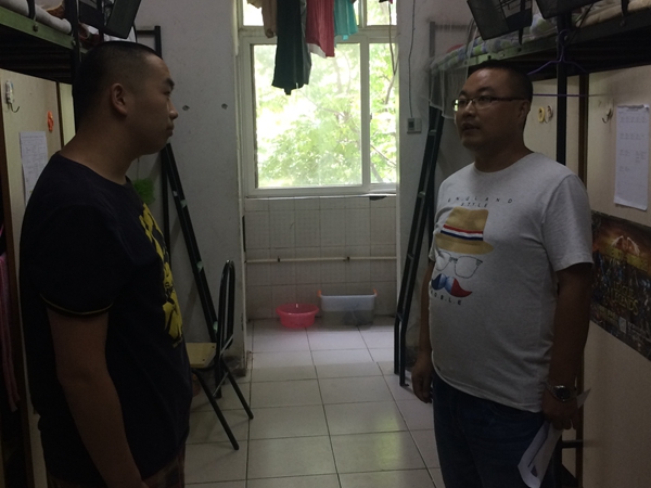 7月18日中午,汽车学院学工办主任张勇一行前往学生宿舍和创业训练营,走访看望暑期留校住宿的同学们,询问同学在校学习、生活、安全等方面情况,确保同学们度过平安充实的假期。