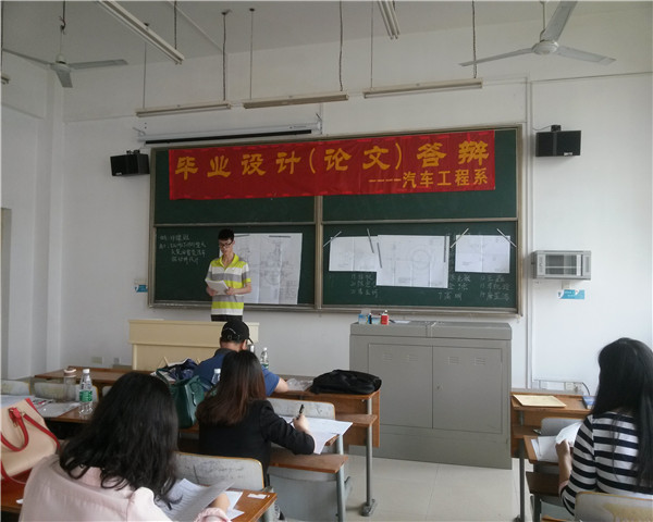 参加答辩的同学准备充分,信心满满,表现出车辆工程专业应有的风范。在毕业论文(设计)陈述环节中对自己选题的背景、选题目的意义、研究方法、结论以及展望都做了详尽的叙述。之后各答辩委员针对工程图纸和毕业设计(论文)内容提出相关问题,考察同学们对专业知识以及毕业设计论文(论文)研究问题的掌握程度,并及时、有针对性的对同学们论文中存在的问题提出修改建议。在最后的答辩小结中,答辩组长对同学们的答辩表现进行了总结,同学们聚精会神,仔细聆听老师的教诲。历时半年的准备,经历了选题、开题、修改、定稿、答辩五个阶段,终于画上了圆满的句号,同学们虽偶有不足,但都获得了老师们的一致肯定,174名同学毕业设计(论文)全体通过。