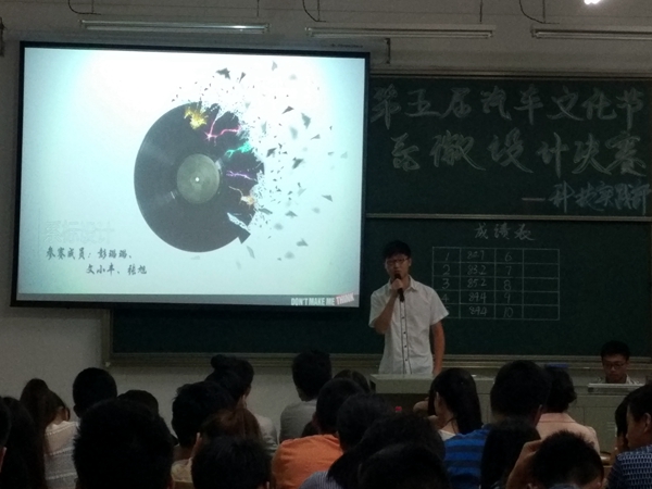 本次比赛共分为三个环节,分别是参赛选手作品展示、观众互动、评委点评。比赛开始后每位选手逐一上台展示和讲解自己的作品。选手们分别从设计理念、创作灵感、作品与系训的联系等方面对作品进行了解说。其中,一些作品在系徽中加入了方向盘、轮胎、赛道等与汽车相关的元素;也有作品将雄鹰、太阳等融合于系徽里,十分大气磅礴;而汉字与图形之间的完美组合,也给人耳目一新的感觉;更有选手,用系训“勤、能、德、合”的英文首字母尽情排列,创作出严谨踏实却又创意无限的作品。比赛中途,穿插的看校徽猜名校的互动小游戏,在活跃气氛的同时,也为现场观众送上不少答题福利。所有选手展示完之后,杜妮丝老师和王健美老师分别对参赛作品进行了点评。