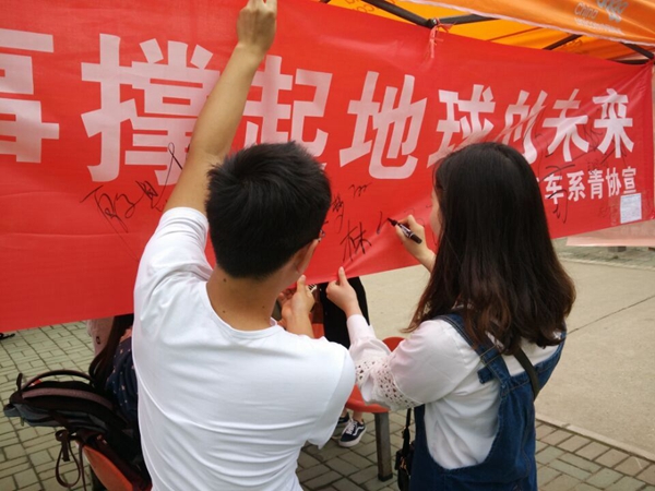 汽车系青协会长任苗介绍道,本次活动只是长久环保活动的一个开始,希望能有更多的大学生参与到环保活动中来,从自己做起,从小事做起,用实际行动来践行低碳环保的生活理念,做到时时环保,事事环保。