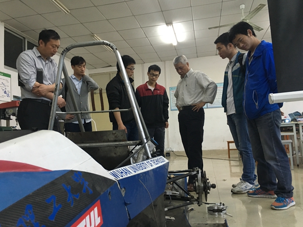 随后,唐主任就同学们的发言提出自己的看法,纠正了同学们错误的观点,并就技术问题与同学们进行了深入的交流和讨论,帮助车队解决了一些高难度技术性问题。