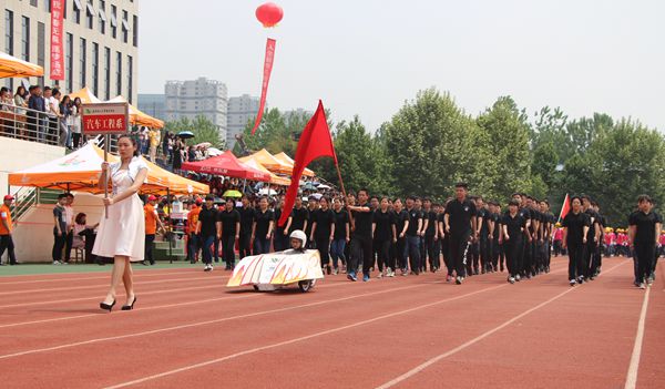 下午13:30,运动会入场式正式开始。随着入场式音乐的响起,彩旗队和各系方阵依次迈着整齐的步伐接受院领导的检阅。我系方阵成员身着整齐的黑色服装,迎着太阳的光辉,踏着坚定的步伐,喊着响亮的口号,走出了他们的英姿飒爽,走出了他们的蓬勃朝气。以学生自制汽车开道的独特方阵设计,更是成为主席台前一道亮丽的风景线。