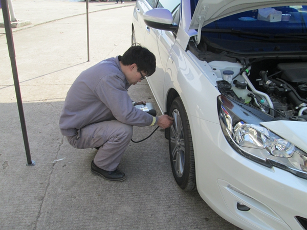 活动开始不久,一辆东风标致308就来到了现场,车主提出了此台车的问题,在认真听完车主提出的问题后,技术人员对车辆进行了详细的检查,解决了汽车的小毛病,最后解答了车主的问题,并给车主在车辆维护保养方面提出一些建议,例如武汉交通比较堵,燃料不能充分燃烧,在发动机内容易产生积碳,影响发动机的使用寿命,建议车主定期去清理积碳。活动引来了不少车辆前来检测,直到16:30,还有很多车辆在排队等候检测。