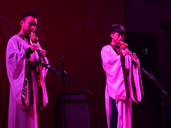 现场节目格外精彩,观众前一秒还在饱含深情、婉转悠长、充满中国风味的葫芦丝合奏《星月神话》的安详、静谧的氛围中漫步游走,下一秒便又被《鬼步舞》快速有力的动作、充满动感活力的舞蹈所吸引。