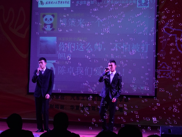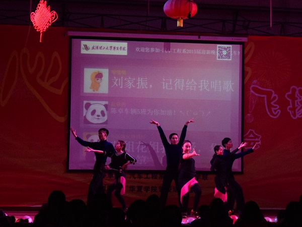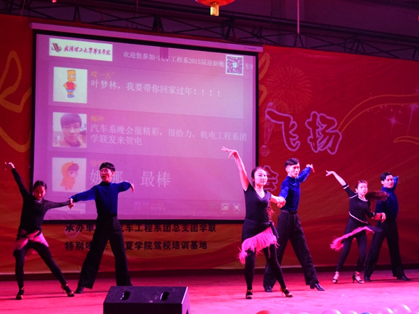 为丰富校园文化生活,12月18日晚18:30,汽车工程系迎新晚会在大学生活动中心举行。学工处胡水兵处长,我系党总支书记刘源老师,学工办主任张勇老师,系实验中心主任魏华田老师、副主任向少卿老师,教学与行政办汪弈老师,实验中心张洲老师,车辆教研室高金玲老师,车辆教研室信倩倩老师及我系学工办全体辅导员参加了此次晚会。