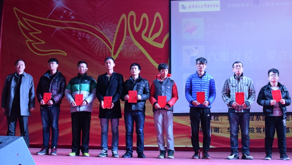 期间,学工处胡水兵处长、党总支书记刘源老师、学工办主任张勇老师分别为“学风建设月”辩论赛、车标设计大赛、汽车知识竞赛的获奖同学颁奖。